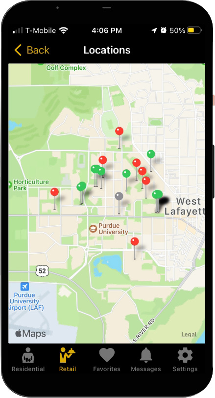 View open dining locations near you with the Purdue Mobile Menus map feature.