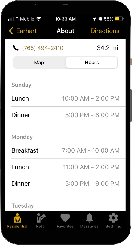 Take a look at daily menus, hours of operation, estimated wait times, item descriptions and more.
